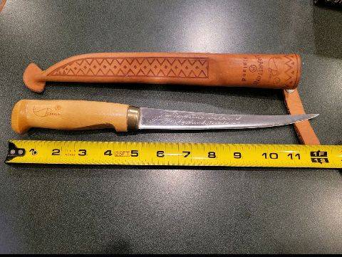 Fillet Knife - J. Marttiini Finland Filet Knife With Leather Sheath: Genuine Leather Sheath. 6" Stainless Steel Blade. Excellent Condition. Used. 20.00 Or Best Offer. If Interested, Call Or Text Me...