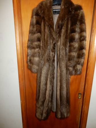 This beautiful Beaver Fur Full-Length Coat is in excellent condition, and comes with buttery-soft Buckskin Gloves with matching Beaver Fur-trimmed cuffs. Properly stored off-season at the furriers...