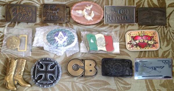 Belt Buckles (vintage) Used/NEW $15 each or two for $25 Flick My Bic, Pony Express, Leather, Cross, Campbell Express, Wildlife, Boots, CB, etc Some Made of Brass As pictured