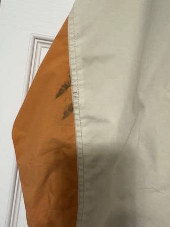 This is a very nice winter ski jacket in good condition. The only flaws are both on the right sleeve and they are shown in the pictures