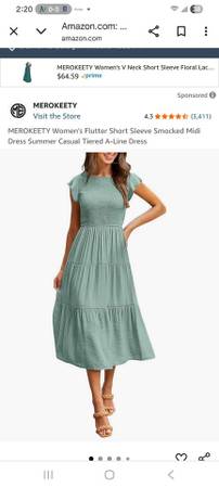 (NEW W/TAG) Merokeety midi length sage dress with elasticzed top portion of dress (Sells new on Amazon for $43)