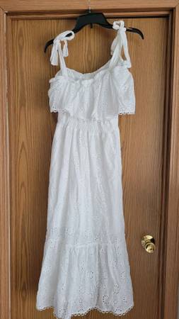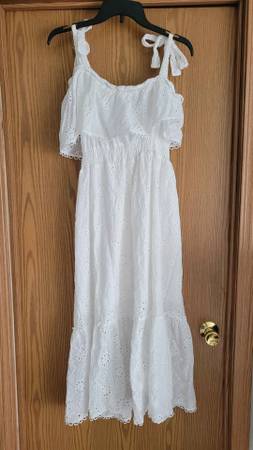 Simplee midi length white sundress with shoulder ties. $20