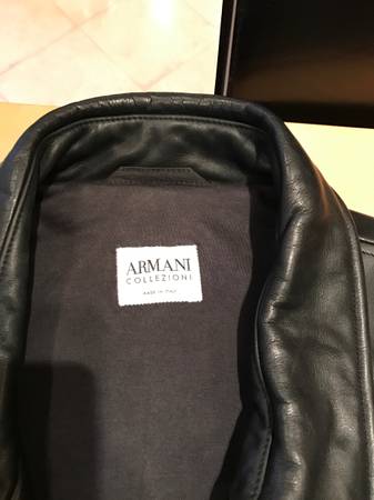 Men’s leather Armani coat. Size 46 European sizing. Made in Italy. Fits men’s size large US sizing. Reg 42-44 coat. Any questions email me John .