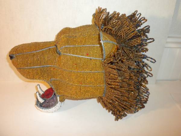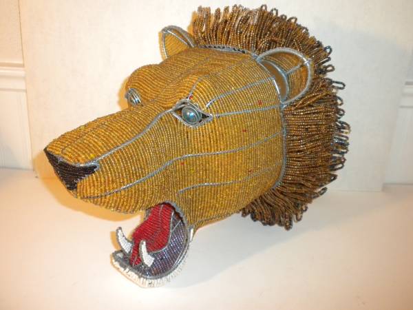 DETROIT LIONS African Beaded Lions Head Sculpture to hang on wall This is a Great quality Beaded Lion head and is well done, very solid and Looks Great! Measures approx 13" long x 9" wide x 10" tall