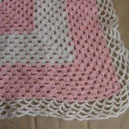 Baby Crochet Reversible lacy pink blanket 35" X 35" Good condition, No rips, tears or stain.
