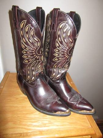 Mens Leather Cowboy Boots with Eagle Stitching and Metal Tip Guards. Mint Condition From Wyoming Size 10 Brown