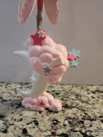 This is a Galoob Sky Dancer pink "Moon Shimmer" Doll that is in excellent very clean condition. This is dated 1994 under the wing. I tested it out and the pull string mechanism works and she does fly off on her own. She stands 12” tall.