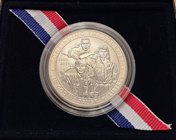 The design of this coin showcases the iconic Boy Scouts of America logo and is a must-have for any fan or collector. Minted in Philadelphia, this $1 dollar coin is a unique and rare find that will make a great addition to your collection. Don't miss out on this opportunity to own a piece of history.