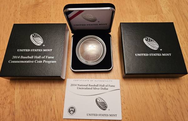 2014 Silver Dollar – among the first-ever curved coins struck by the U.S. Mint! Issued to honor the 75th anniversary of the National Baseball Hall of Fame in Cooperstown, NY, this clad Proof features both a popular theme and innovative technology.