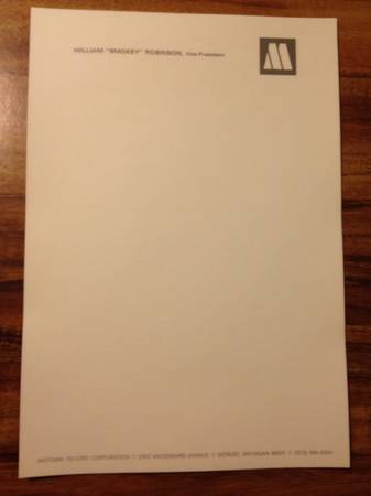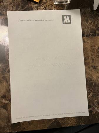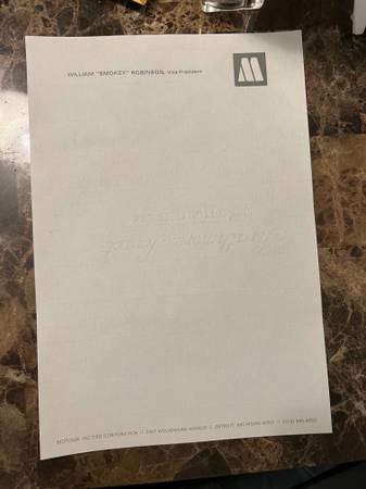 Authentic Motown Memorabilia William "Smokey" Robinson Vice President / Stationary obtained directly from Motown Extremely rare Asking $900.00 QUESTIONS and OFFERS WELCOME Local Pick Up in Oak Park,...