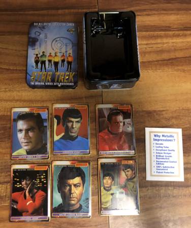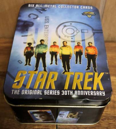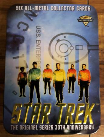 Star Trek The Original Series 30th Anniversary Metal Collector Cards by Metallic Impressions Includes Six All-Metal Collector Cards in Collectable Tin. Tin has been opened / Cards are individually...