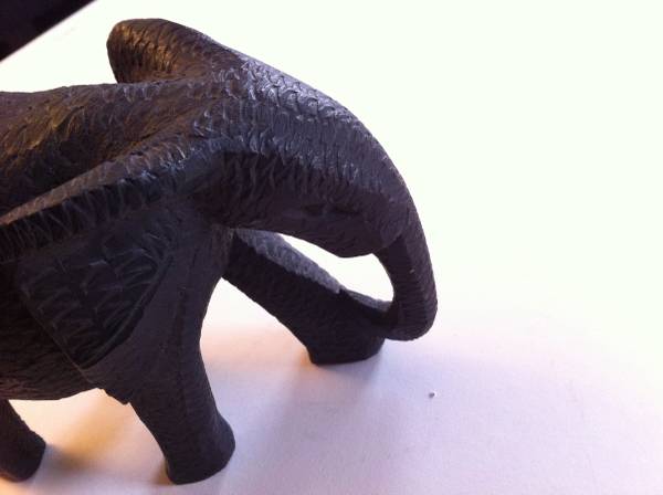 Hand carved Elephant, Made in Kenya. Dimensions: 3 1/8"w x 6"long x 4 1/4"high. In fine condition. Label no longer attached to elephant. Cash only.