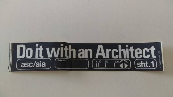Do it with an Architect Bumper Sticker Copyright Charles Guerin 1976 Dimensions: 15”wide x 2 ¾”high Navy & White In fine, unused condition. Smoke-free home. Cash only.