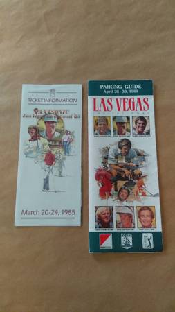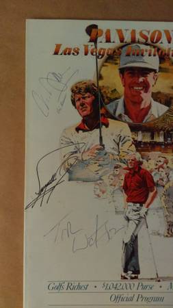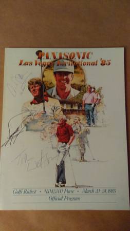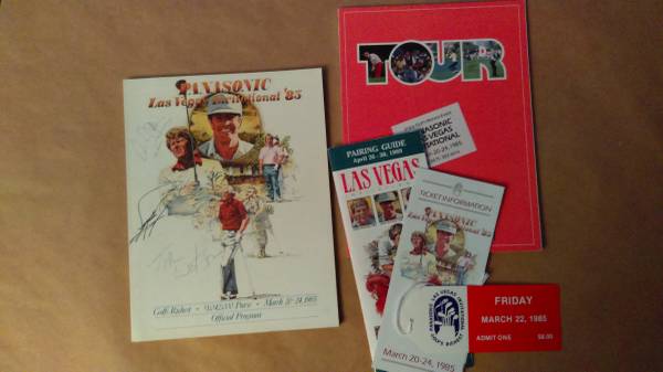 Vintage Panasonic Las Vegas Invitation '85 Official Program, autographed. Also inlcuded Tour Book, Pairing Guide, Ticket Information brochure, and Pass Autographs include Tom Watson, Fuzzy Zoeller...