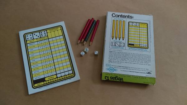 Vintage Vegas 13 Dice Game In good condition. Includes instructions, score pads, 3 die and 4 pencils. Cash only