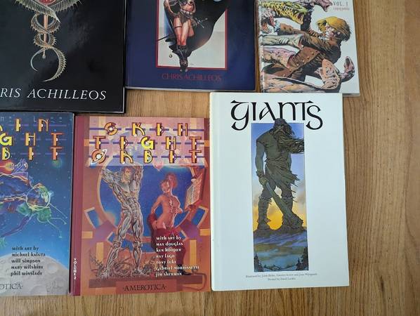 Fantasy Anime Book Collection Most are in barely read, if at all, condition The First Kingdon - Jack Katz Mirage - Boris Valiejo Sirens - Achilleos and MORE See photos for true condition Cash ONLY...