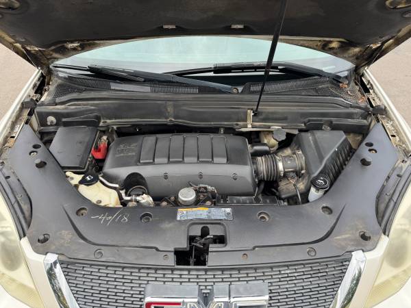 This 2011 GMC Acadia SLT runs on a 3.6L V6 engine. It has only 110,801 miles. This Acadia is a great deal for the money. Featuring third row seating, a clean Carfax, and low mileage, this vehicle won’t last long!