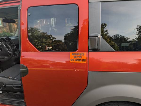 2005 Honda Element, approx 180k miles, orange. Drives but overheats, I think the head gasket is blown. Tow recommended. Mechanics special. $1,000 OBO. Title in hand.