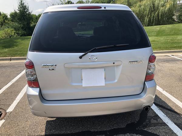 Original owner of Mazda MPV, dealer maintained in very good condition, runs great, clean in n out, 3.0 L DOHC 200 HP V6 engine, 5 speed automatic transmission w/overdrive, 7 passenger seating, velour clothes seats, 2nd row side by side slide seat, 3rd row tumble under seat, power windows/ door locks/mirrors, power 4 wheel disc brakes, 4 wheel anti-lock brakes, variable intermittent wiper, cruise control, steering wheel mounted audio cntrls, keyless remote entry, dual front air bags, heated mirrors, LX package with rear heat/AC, dual sliding side doors, one of a kind n reasonably priced. Some rust on wheel wells.