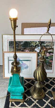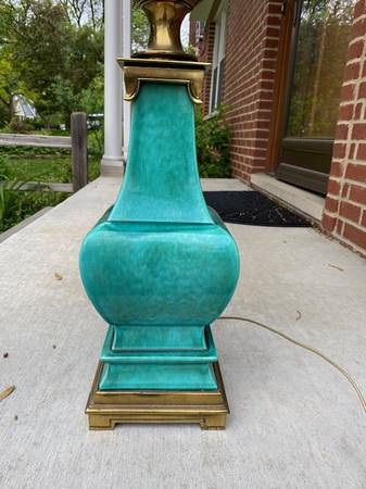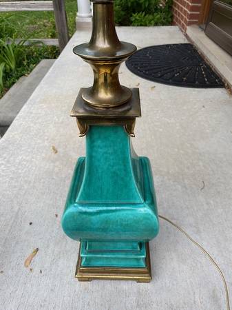 MCM Green Glazed Stiffel Brass Lamp Pagoda Style Also ask about 2 other Mid Century Lamps