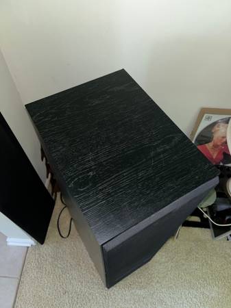 Excellent sounding entry level audiophile speakers in black oak. Efficient with great bass, clear mids and highs. Never over driven and well cared for, I give them an 8/10 condition due to age. Floor-standing 38”x10”x14”. Currently on spikes but I have the foot pads. I have two pair for sale. Pics are of one speaker as all four are in the same condition. $290 for one pair, $500 for both.