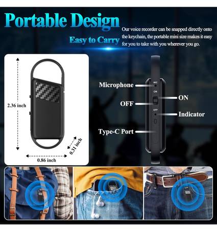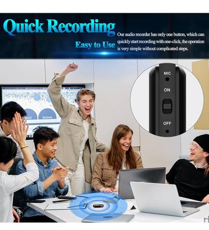 [ One-click Instant Recording ] : digital audio recorder can quickly start recording with one-click, press the button to the "ON", you can record important content immediately! The mini recorder is only 0.4 inches thick and 0.4 ounces weighs, making it easy to carry.