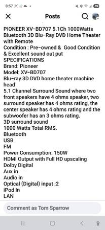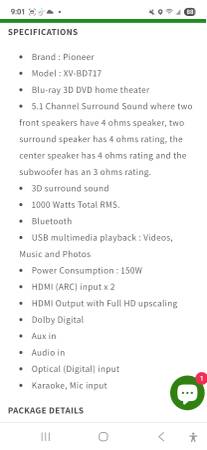 PIONEER XV-BD707 5.1Ch 1000Watts Bluetooth 3D Blu-Ray DVD Home Theater with Remote