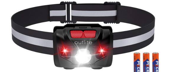 New, unused LED Headlamp has Reflective Strip Head Lamp with Dual Switch for Red Light & White Light, Waterproof Head Lamp for Running, Camping, Hiking, Climbing, Fishing , and Hunting. Uses three AAA batteries. Has 5 lights setting of with 3 White (High, Low and flashing) and 2 Red (Steady and flashing).
