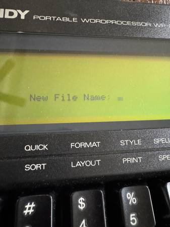 Fully functional Tandy WP-2 (word processing, screen, keyboard, etc.) Clean exterior All keys responsive, screen displays cleanly, memory retains input reliably Operates on 4 AA batteries