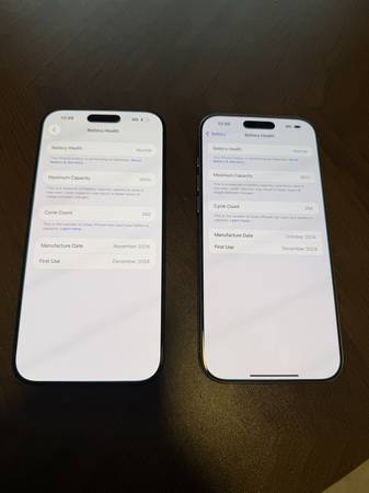 I have two iPhone 16 Pro Max both 256 GB for sale. These are my own devices, I upgraded and no longer need them. White iPhone 16 Pro Max 256GB Unlocked Perfect condition, battery health 95% No...