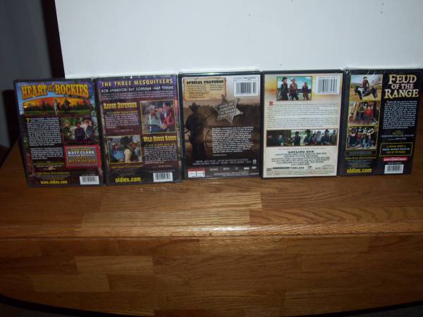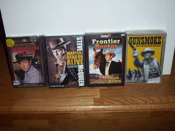 I have One DVD of BOB STEELE in FEUD of the RANGE. I have One DVD of TEXAS CYCLONE staring John Wayne, I have TWO DVD of THE THREE MESQUITEERS, One is RANGE DEFENDER, the other is HEART of the ROCKIES. I have TWO DVD of FRONTIER DOCTOR Starring REX ALLEN. YOU WILL BE GETTING 10-EPISODESi Over 4- Hours. I have FOUR DVD of HEROES of the OLD WEST. There is 20-Full Episodes and 10-Feature Films. The stars are THE LONE RANGER, BONANZA, ERROL FLYNN, RONALD REAGAN and JOHN WAYNE and More. I have THREE DVD of AUDIE MURPHY STORY, in WHISPERING SMITH. I have FOUR DVD of STEVE McQUEEN in WANTED DEAD or ALIVE Season One. You will get 36 Complete Episodes.
