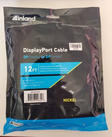 "Inland" Displayport cable 12ft (Male to Male) - $15 (Southfield)