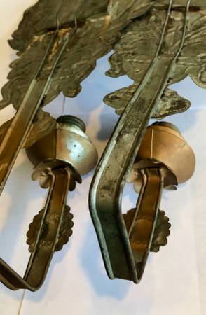 Unique antique vintage boho style metal wall mount candle holders. 16.5"T x 5"D x 7"W