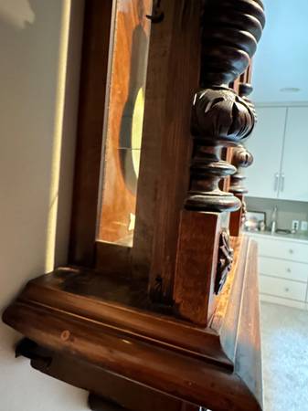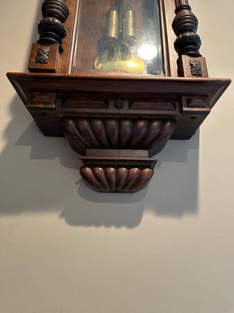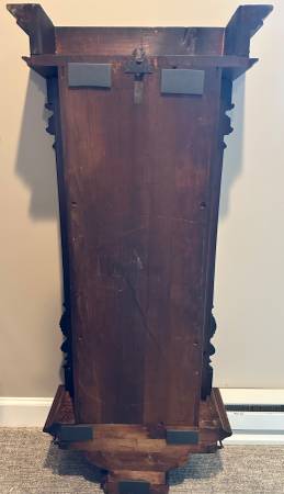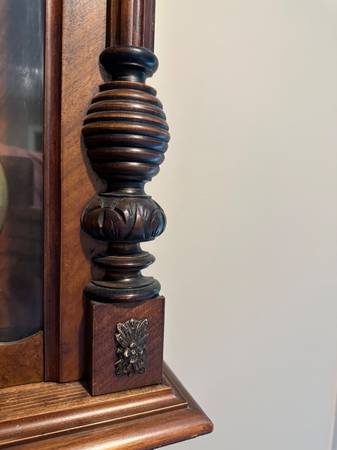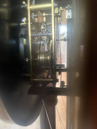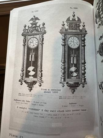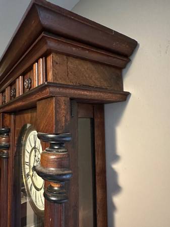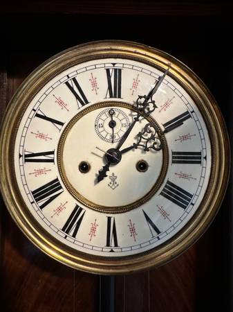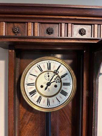 Vienna Regulator chimes (1 time) on the half and chimes the hours on the hour. 1895 era. The half hour chime has been finicky for a long time, setting the lever in the movement will restart it for a while.