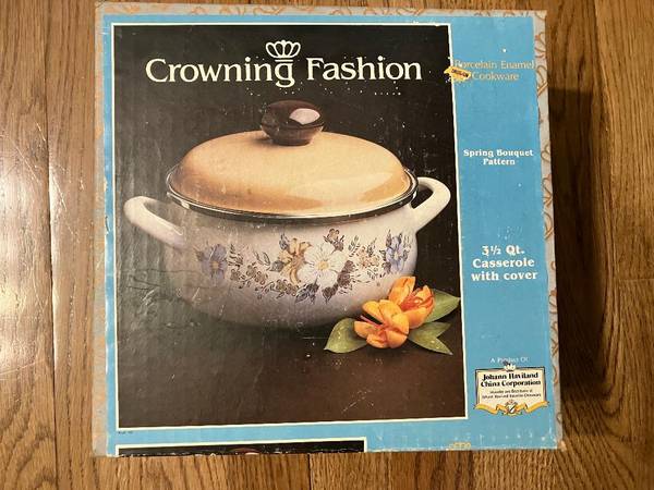 New, with box Porcelain enamel cookware Spring Bouquet pattern