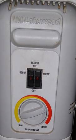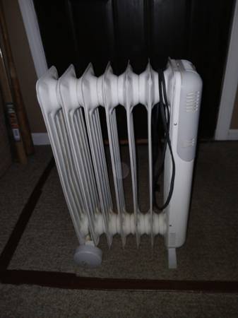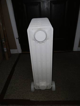 See pic's. Model #7101. Portable. Has back wheels for easy moving. Oil is enclosed in unit 1500W. Never has to be refilled or changed. Works great. Cash only upon pickup