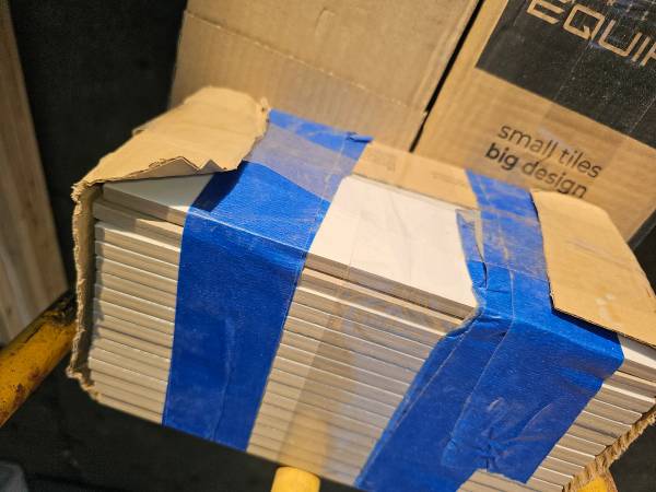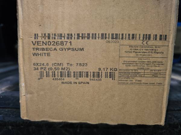 25HH 20 14-Jun JOHN CURTIS 25429X-25HH20 BUILDING MATERIALS Q-5 TILE, 2 BOXES, EQUIPE, VEN026871 TRIBECA GYPSUM WHITE, 6X24.6CM, 34 PCS / BOX, 8 BOXES & 25 CORNERS NEW P57387 #40 NET EBAY...