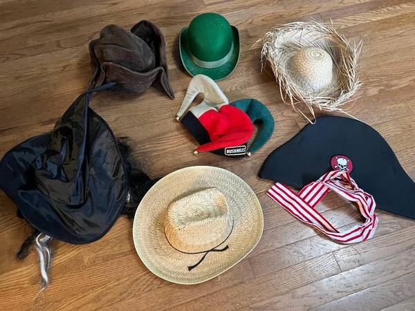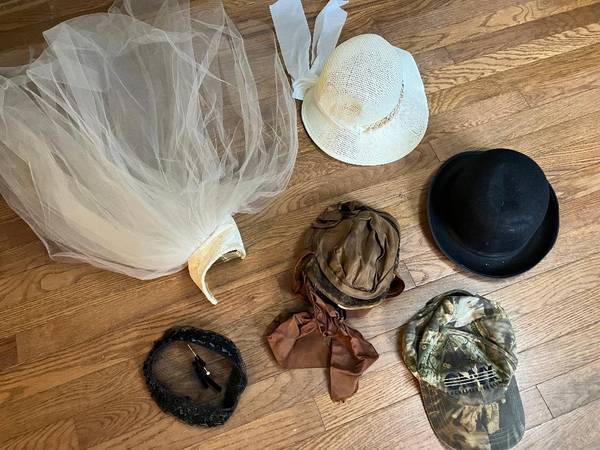 Also included with the wedding veil for $10 are twelve more hats; some vintage and some costume hats.