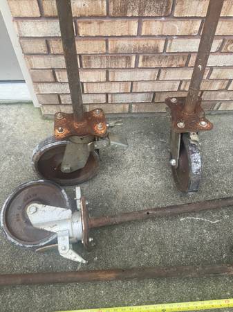 10” scaffold casters, an extensions, can be used on slopes adj. height. Extremely heavy duty. Call ask for Bob. Thanks for looking. Available if ad is up.