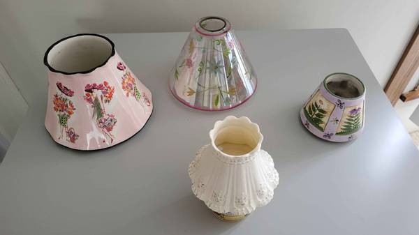 Small jar topper with mango jar candle $8 / Large Fashion Lady jar topper $10 / Large clear glass floral jar topper $10 / Small jar topper with ferns $5