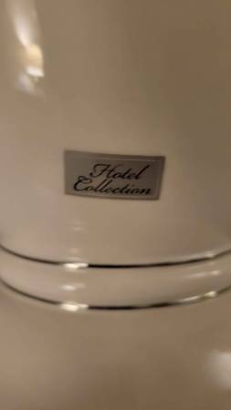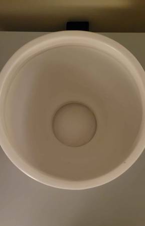 Carleton ceramic cream wastebasket that can double as a planter. Originally purchased from Bed, Bath and Beyond from the Hotel Collection 10"H 8"W at top 6.5"W at bottom