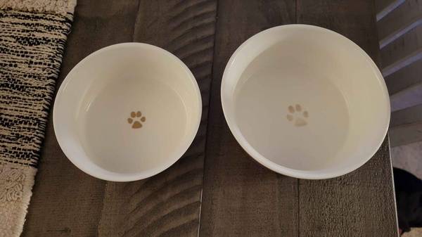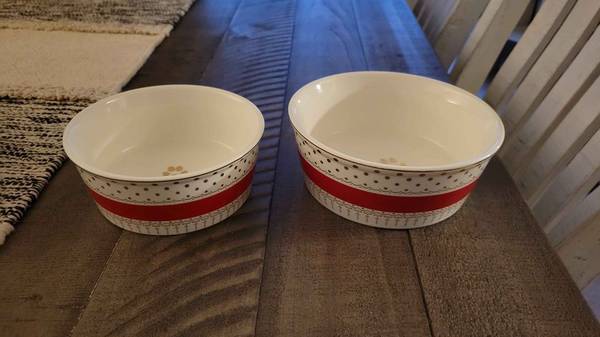 Set of 2 pet bowls by Fidos Diner by Coastline Imports 1 small (5 x 2.25") and 1 medium size (6 x 2.5") Can be used for dog or cat Ceramic Excellent condition