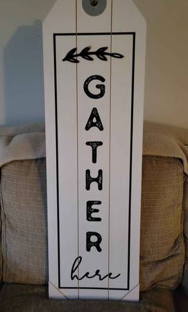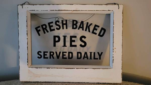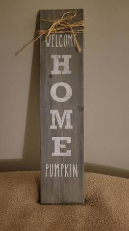 Welcome Home Pumpkin (5.5"W x 24"H) - $8 Gather Here (11"W x 36"H) - $8 Gather - small (9"W x 6"H) - $3 Fresh Baked Pies (14.5"W x 11"H) - $8 Round Wood Rustic Mirror (24"D) - $15
