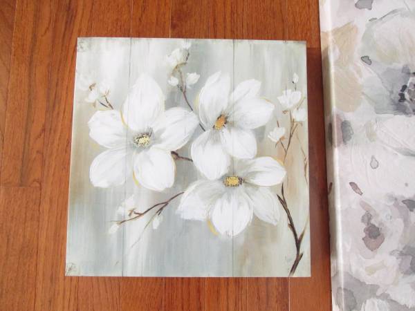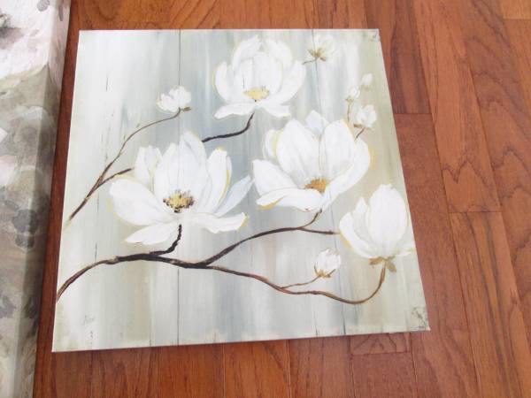 3 Canvas picture set. 1 large measured 32"x32", 2 small each measured 12"x12". Neutral color that goes well with interior decor. Excellent condition.