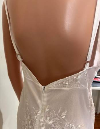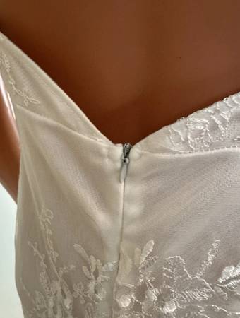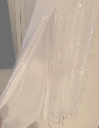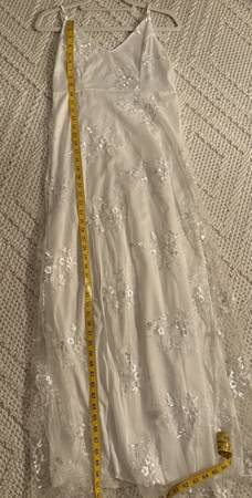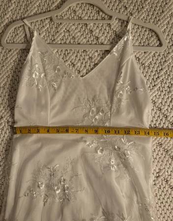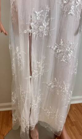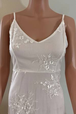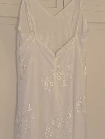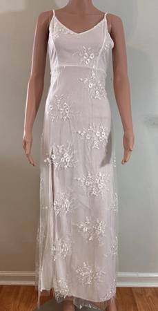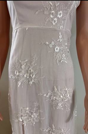 White slip lace maxi dress, brand new! Perfect for an outdoor summer wedding! Very light and flowy with a side slit. Size 6 $50 OBO CALL OR TEXT- NO EMAILS Threeone3 three3zero nine7six4