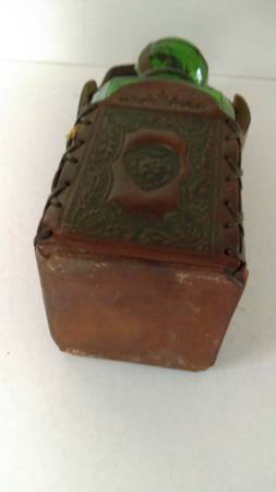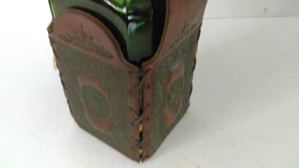 Leather Strapping on Stopper. Leather Collar on Bottle Neck is split, but attached.