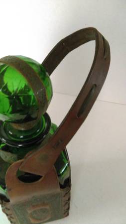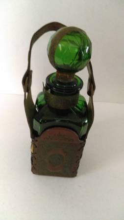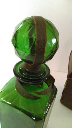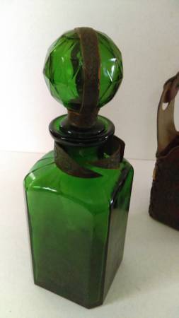 Green Glass Decanter with Stopper.