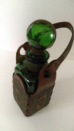 Vintage Glass Decanter with Leather Holder