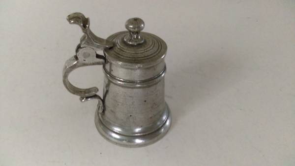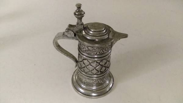 1) German ZINN stein w/lid, w/shield engraved on side