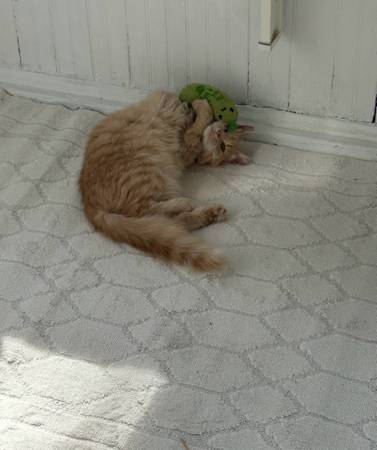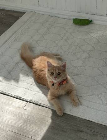Looking to rehome my sweet 7-month-old cat. He’s a playful and affectionate young guy who loves to play with other cats. He hasn’t been around many kids, but he wasn’t bothered by them when he was. Unfortunately, he doesn’t do well with dogs, so I’m looking for a home where he can be the king of his castle or have some feline friends. If you’re looking for a loving companion, he might just be the perfect fit! He comes with a full thing of cat litter, a litter tray, toys, a crate, and a bed.
